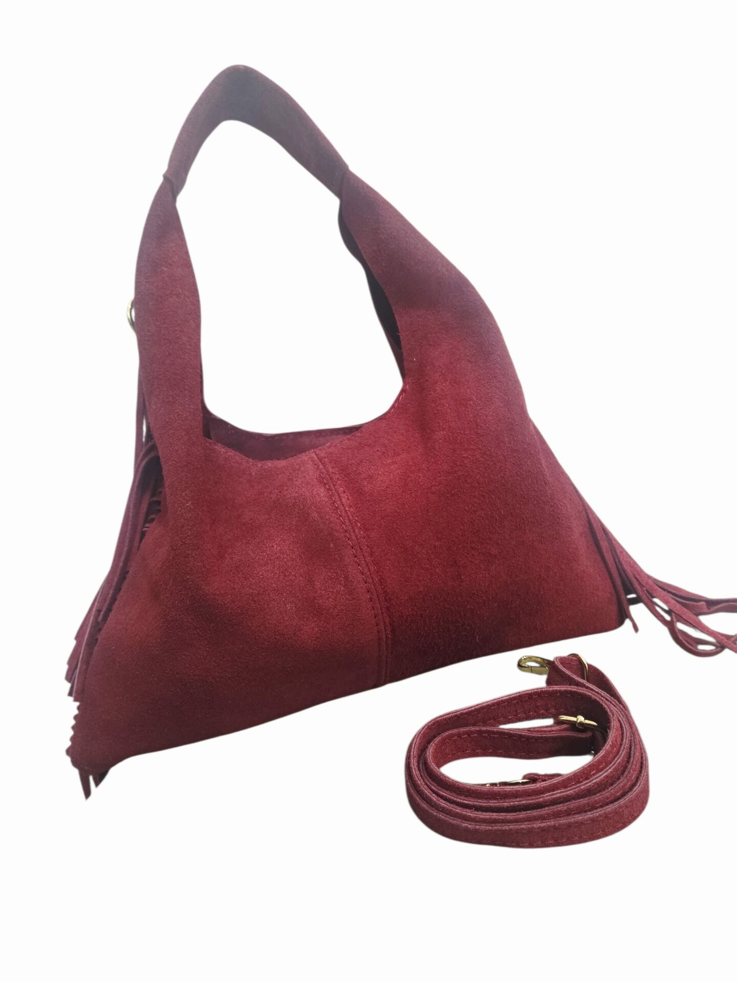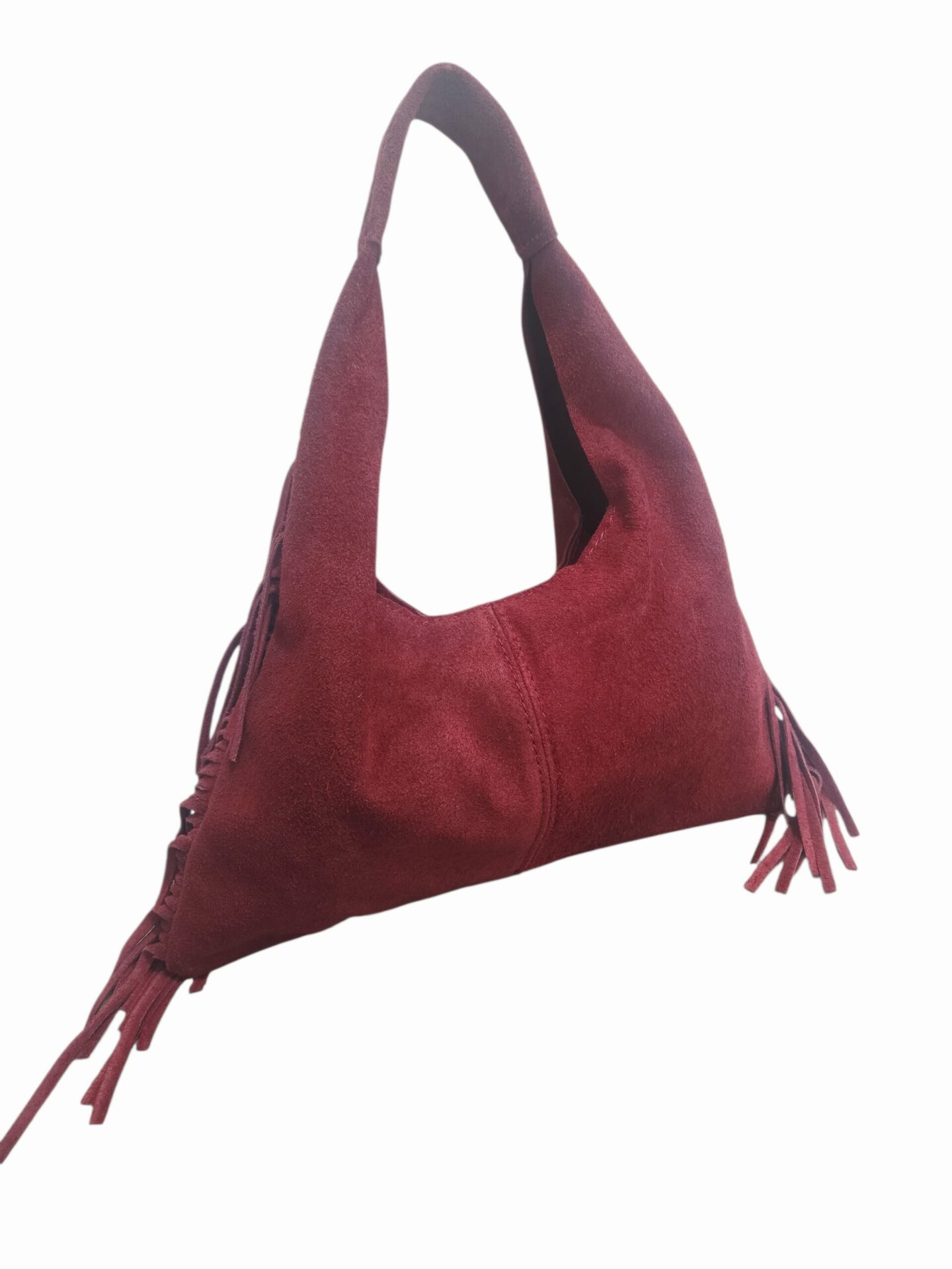 La borsa in camoscio bordeaux è l’accessorio perfetto per chi desidera unire eleganza e praticità. Realizzata in vera pelle di alta qualità, questa borsa made in Italy si distingue per il suo design raffinato e le frange laterali che le conferiscono un tocco di originalità. Spaziosa e versatile, è ideale per accompagnarti in ogni occasione, dal lavoro al tempo libero. La tonalità bordeaux aggiunge un tocco di colore sofisticato che si abbina facilmente a diversi outfit. Dotata di scomparti interni ben organizzati, ti permette di tenere tutto in ordine e a portata di mano. Scegli la borsa in camoscio bordeaux per un look che non passa inosservato e che esprime al meglio il tuo stile unico.