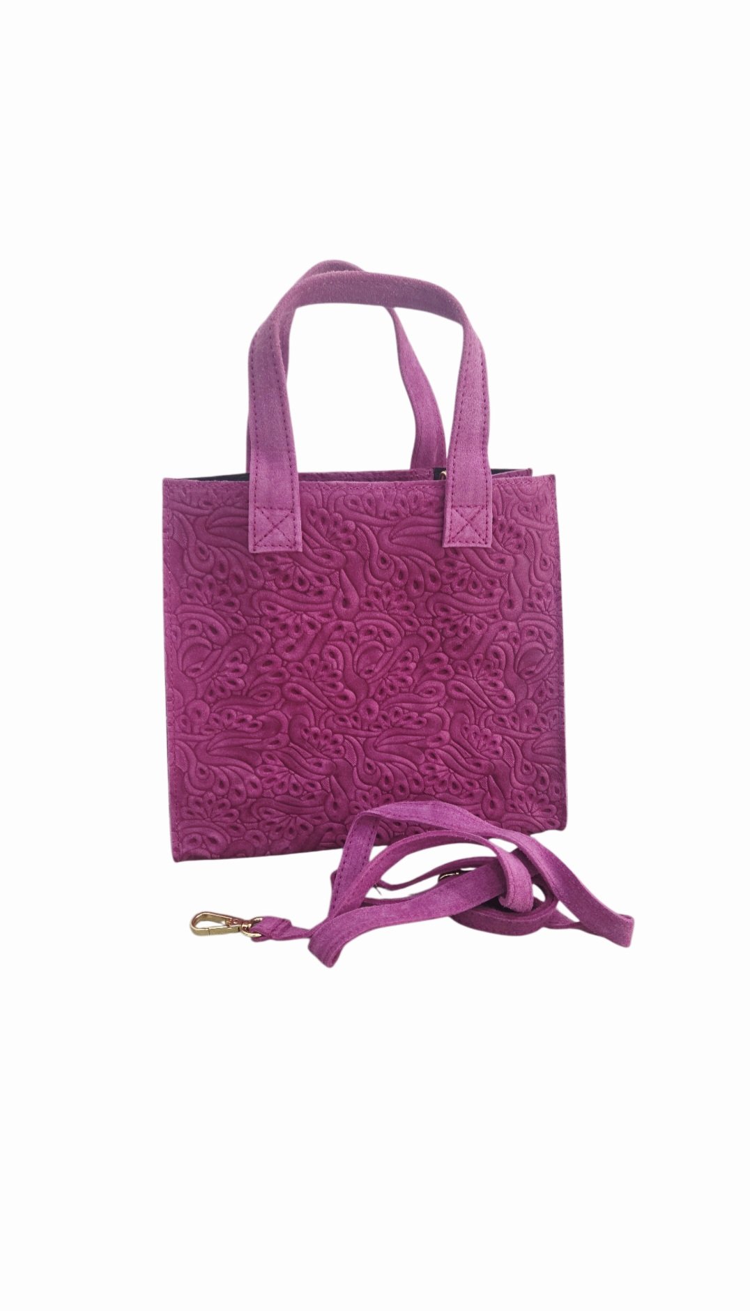 La nostra borsa in vera pelle con camoscio stampato è l’accessorio perfetto per chi ama distinguersi con stile. Realizzata con maestria in Italia, questa borsa ciclamino è sinonimo di qualità e artigianalità. Dotata di una comoda tracolla e di una pratica chiusura con zip, è ideale per accompagnarti con eleganza durante le tue giornate. All’interno, una tasca unica offre spazio sufficiente per riporre in sicurezza tutti i tuoi oggetti essenziali. Con dimensioni di H26 x B12 x L27 cm, è abbastanza compatta da essere portata ovunque, ma abbastanza spaziosa per contenere tutto ciò di cui hai bisogno. Aggiungi un tocco di classe al tuo guardaroba con questa borsa versatile e chic, perfetta per ogni occasione, dal lavoro al tempo libero.