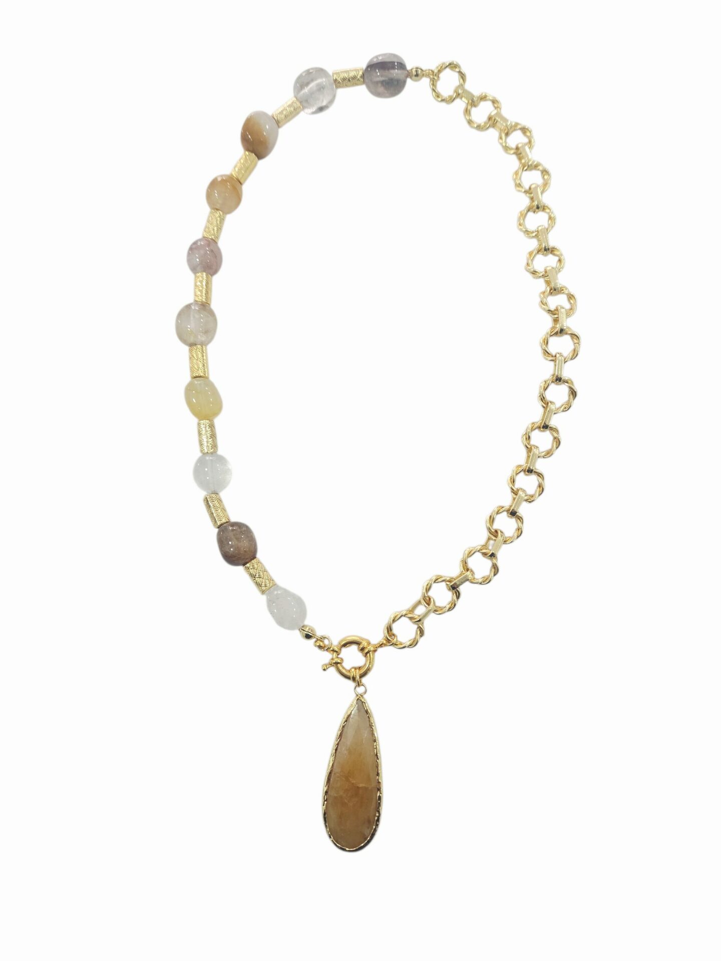 Collana girocollo realizzata con quarzo citrino e catena in ottone lunghezza collana 48cm lunghezza ciondolo 5cm