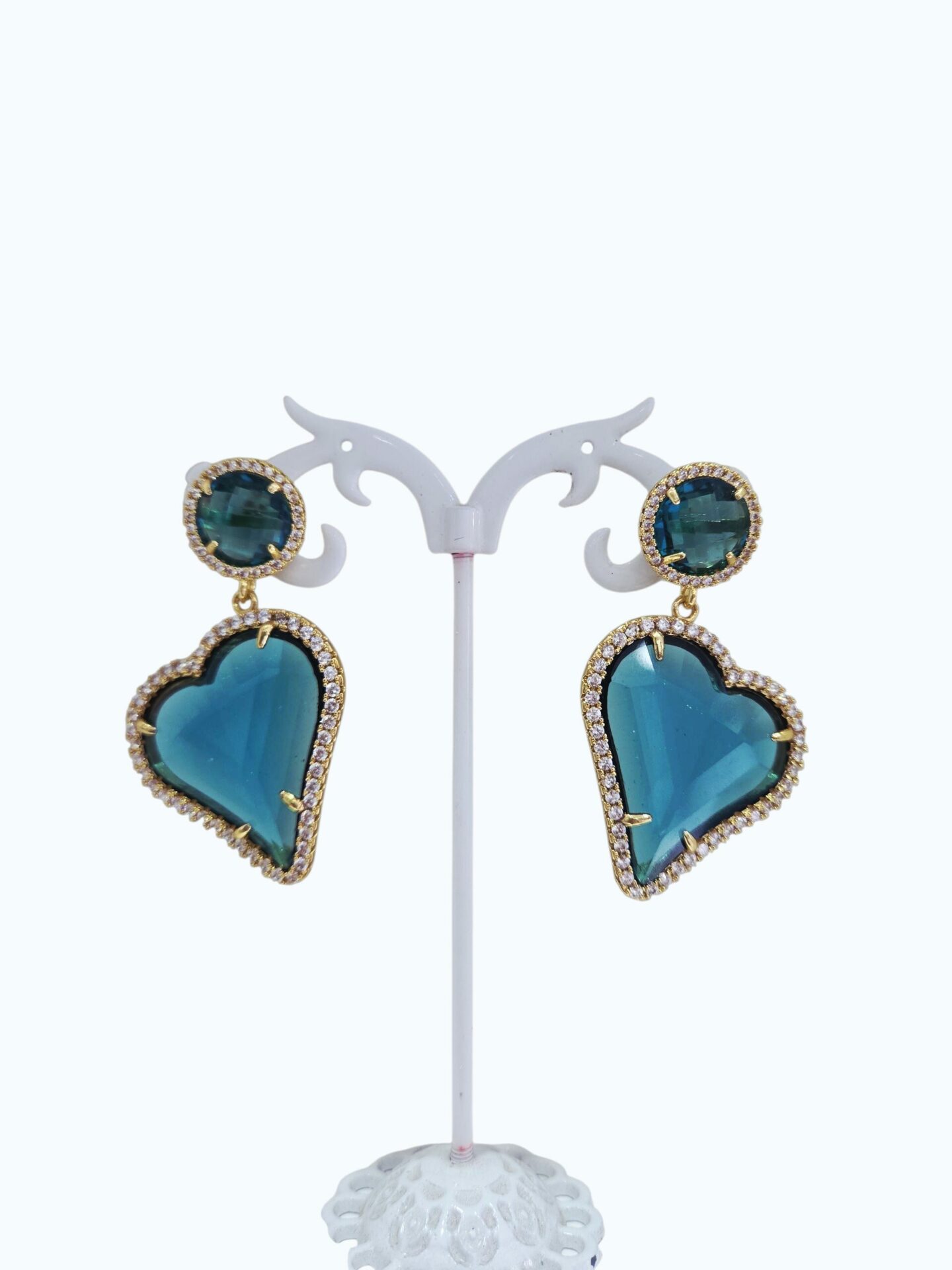 Earrings made with turquoise crystals and zircons on a gold-plated steel base.