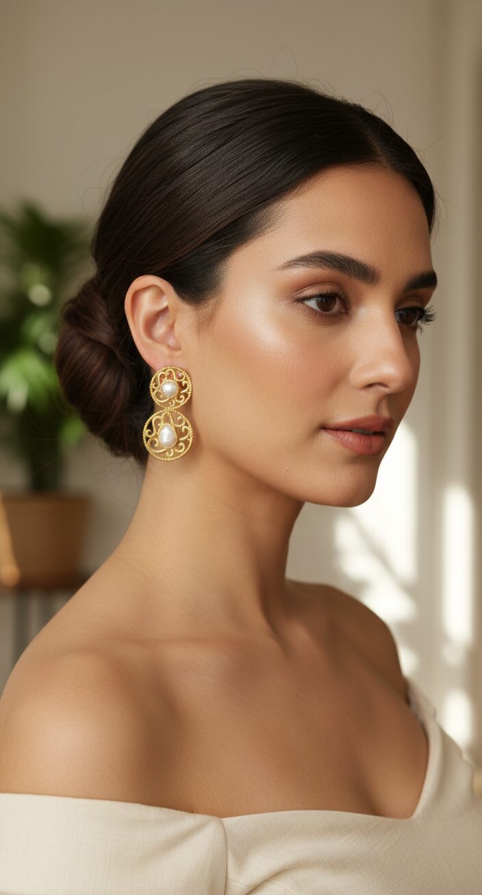Scopri l’eleganza artigianale con i nostri orecchini in ottone e perle barocche, un tocco di classe per ogni occasione.