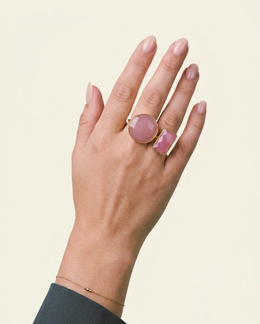 L’anello regolabile con pietre occhio di gatto rosa chiaro e intenso è un gioiello che unisce raffinatezza e versatilità. Ogni pietra, abilmente incastonata, cattura la luce con un effetto cangiante che incanta al primo sguardo. Il design regolabile assicura una vestibilità perfetta per ogni dito, mentre la cornice in ottone aggiunge un tocco di eleganza vintage. Questo anello è ideale per chi ama distinguersi con accessori unici e ricercati, adatti sia a occasioni speciali che all’uso quotidiano. Abbinalo con altri gioielli o lascialo risplendere da solo come protagonista del tuo look. Scegli l’anello con pietre occhio di gatto rosa per esprimere la tua personalità con stile e grazia.