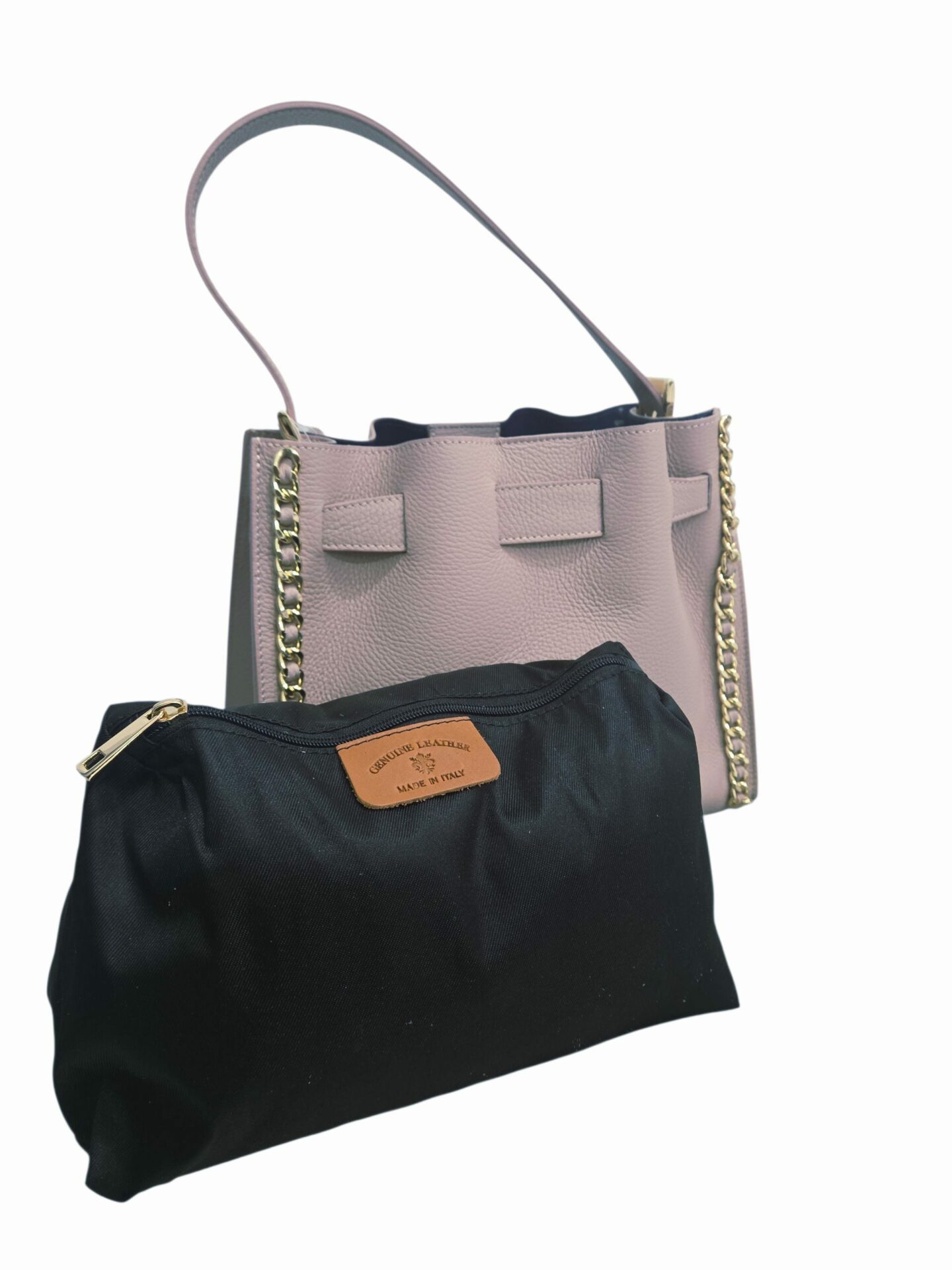 Esplora l’eleganza e la raffinatezza con la nostra borsa cipria in vera pelle, un autentico capolavoro del design italiano. Realizzata con maestria artigianale, questa borsa presenta una catena dorata che aggiunge un tocco di lusso e glamour. L’interno, foderato di pelle blu di alta qualità, offre un contrasto sorprendente e un tocco sofisticato. Grazie al manico allungabile, puoi adattarla facilmente alle tue esigenze quotidiane, mentre la sacca interna separabile ti consente di organizzare i tuoi oggetti essenziali con stile. Con dimensioni perfette, H28 x B10 x L33, è ideale per accompagnarti in ogni occasione, dal lavoro al tempo libero. Lasciati conquistare dalla qualità e dalla bellezza del made in Italy, un investimento in stile e durata.