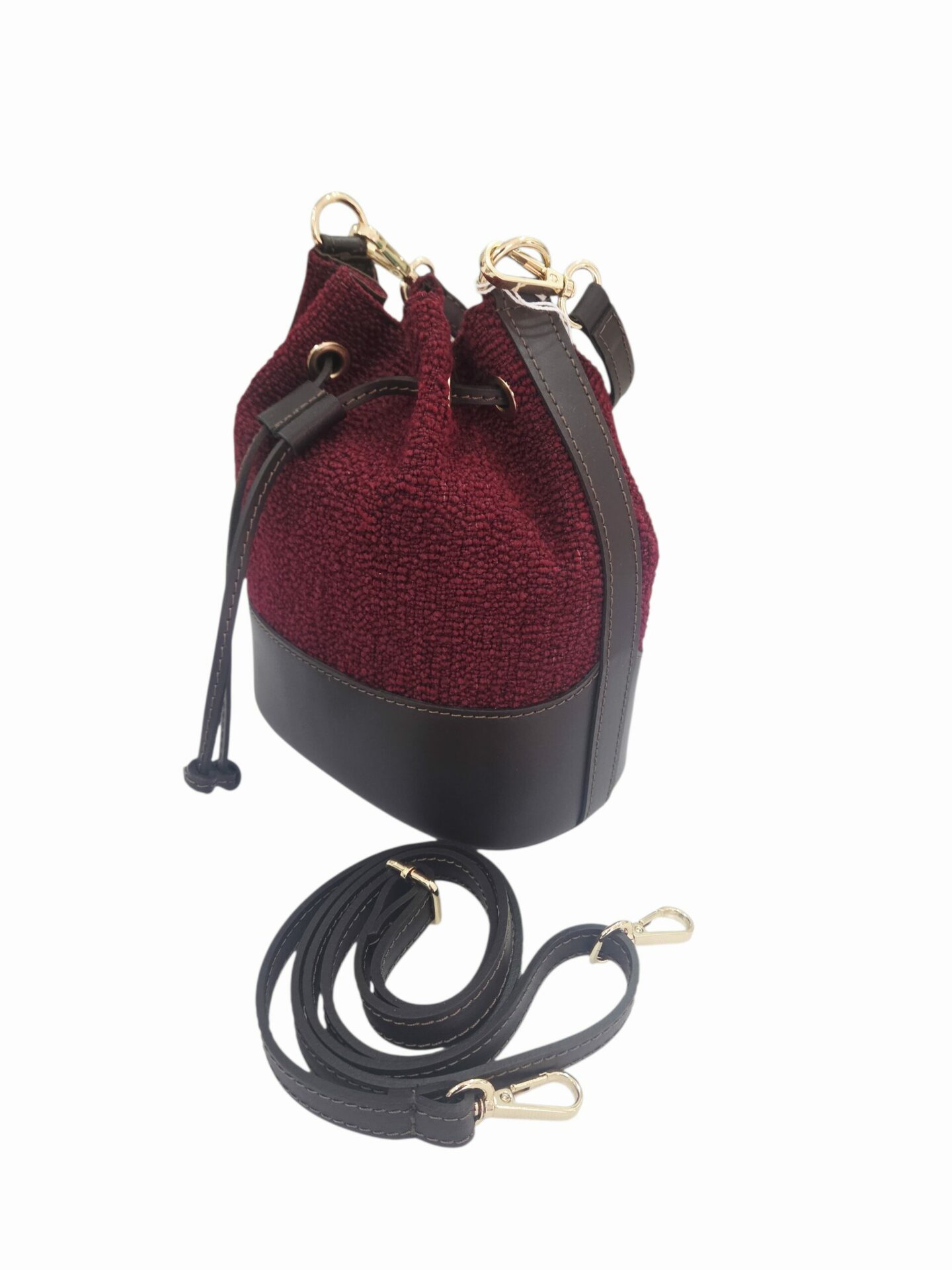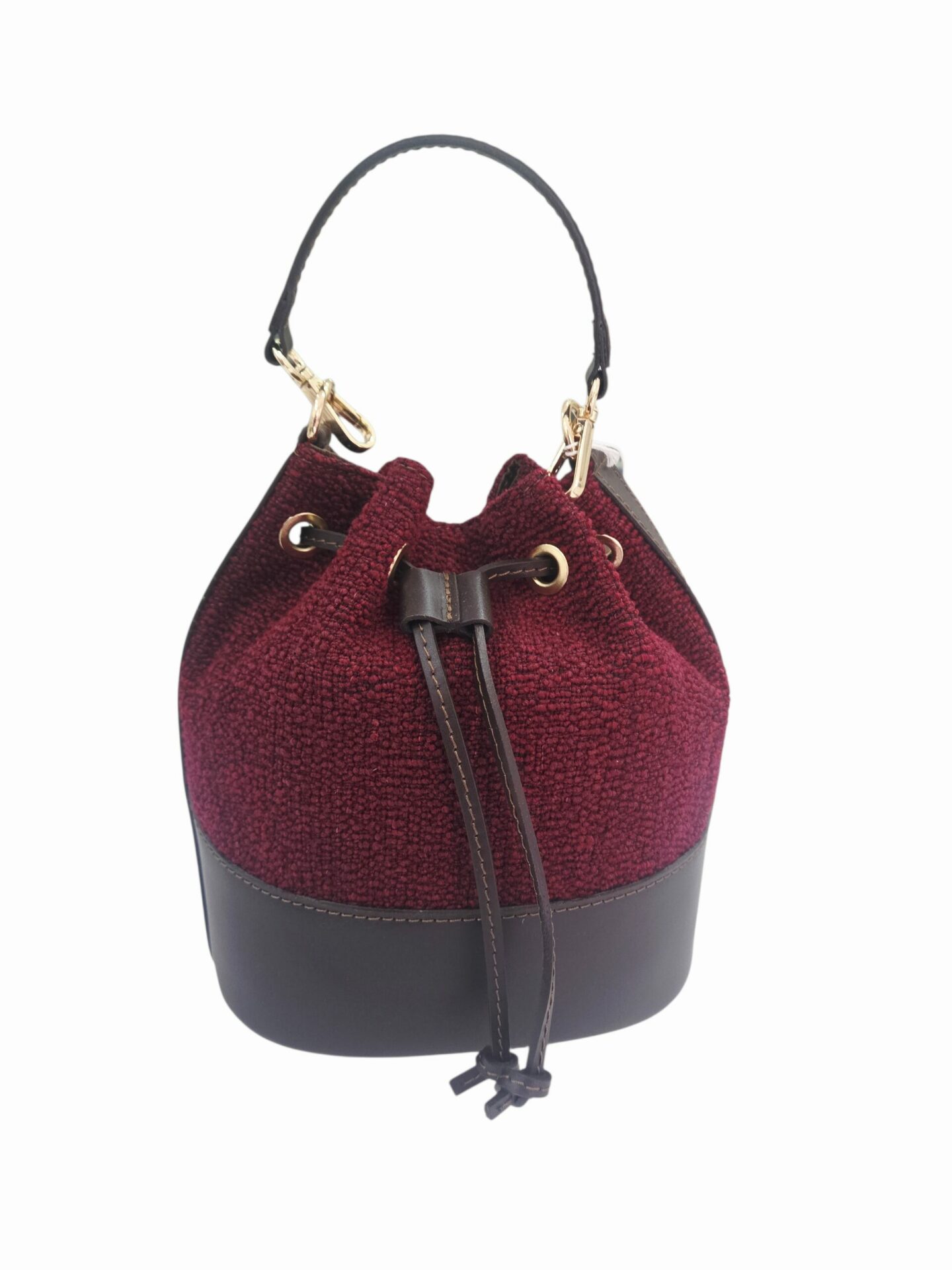 Le nostre borse secchiello combinano stile e funzionalità in un design sofisticato e intramontabile. Realizzate con tessuto bordeaux di alta qualità e vera pelle marrone, queste borse sono un investimento in eleganza e durata. La tracolla regolabile offre comfort e versatilità, mentre l’interno foderato con uno scomparto unico e una tasca con zip garantisce praticità per organizzare i tuoi oggetti essenziali. Con dimensioni compatte di 23 cm di altezza, 13 cm di base e 20 cm di lunghezza, queste borse sono ideali per accompagnarti in ogni occasione, dal lavoro agli eventi serali. Orgogliosamente made in Italy, rappresentano l’artigianato italiano al suo meglio, unendo materiali di pregio e una lavorazione impeccabile. Scegli la nostra borsa secchiello per un accessorio che parla di te con stile e raffinatezza.