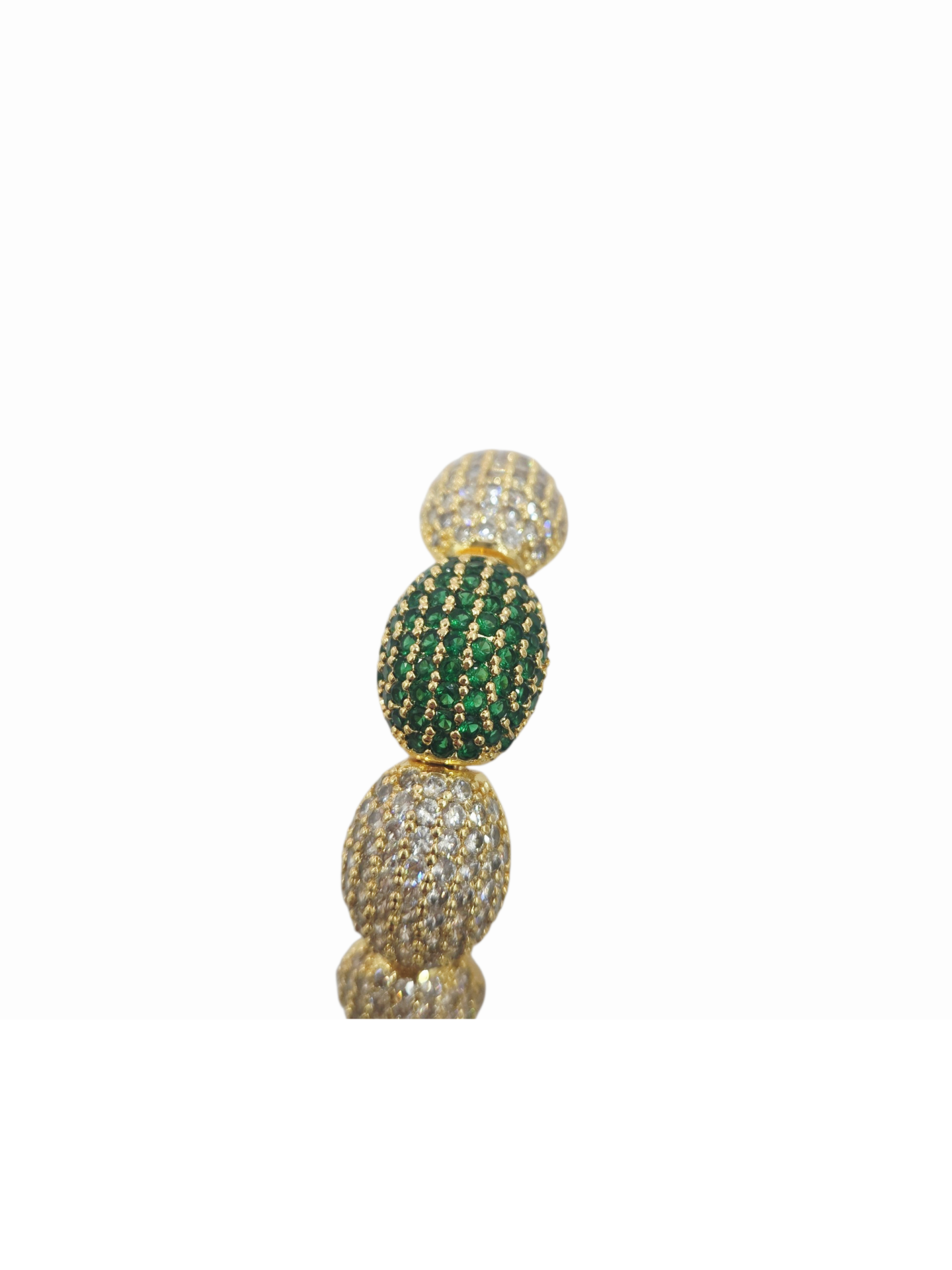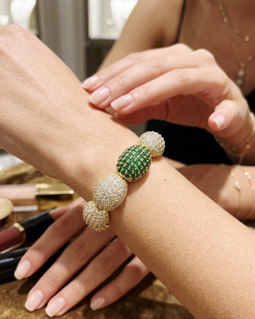 Il nostro bracciale ad incastro, realizzato artigianalmente, è un gioiello unico che combina tradizione e modernità. L’ottone battuto conferisce al bracciale una texture raffinata e resistente, mentre cinque splendidi ovali di zirconi impreziosiscono il design. Quattro ovali di zirconi bianchi circondano un maestoso ovale centrale con zirconi verdi, creando un contrasto elegante e sofisticato. Questo bracciale è perfetto per ogni occasione, aggiungendo un tocco di classe sia agli outfit quotidiani che a quelli più formali. Ogni pezzo è creato con cura e attenzione ai dettagli, garantendo un prodotto di alta qualità che rispecchia il tuo stile unico. Indossa questo bracciale per esprimere la tua personalità e far risplendere il tuo look con l’eleganza artigianale.