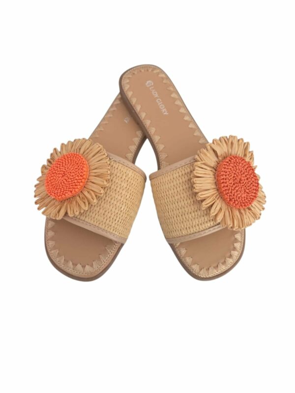 Ciabattine eleganti con fiore decorativo in rafia, ideali per la stagione estiva. Arricchite da un grande fiore centrale in rafia tono su tono. La suola è antiscivolo, progettata per garantire stabilità e sicurezza su ogni tipo di superficie. Il leggero rialzo di 1,5 cm offre un comfort ottimale durante la camminata, sostenendo delicatamente il piede. Perfette per l’uso quotidiano, in casa o all’aperto, uniscono stile e praticità in un design fresco e femminile.