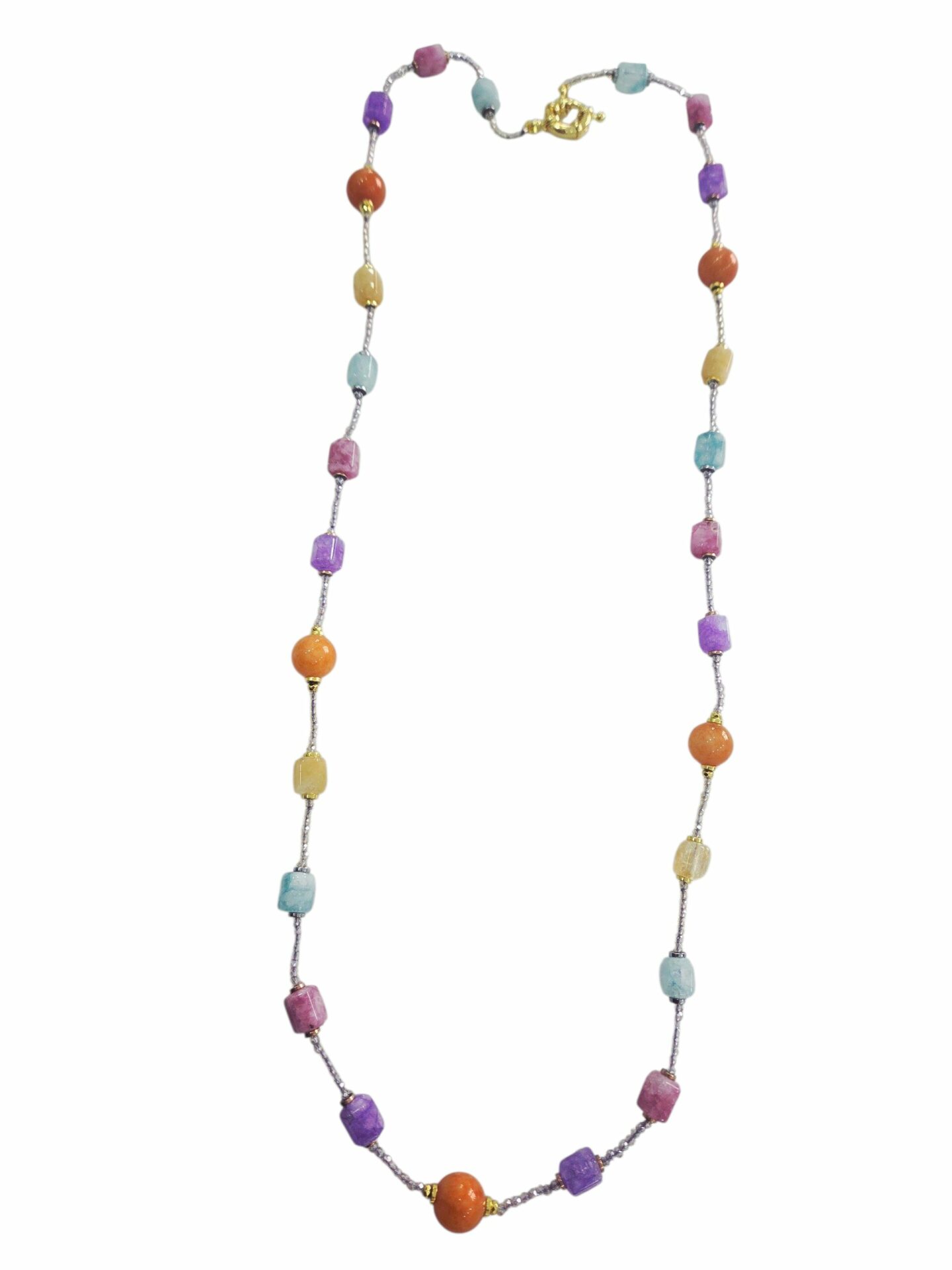 La Collana lunga arcobaleno è un accessorio che trasforma qualsiasi look con la sua esplosione di colori e forme. Realizzata con quarzi e giade di diverse sfumature e tagli, questa collana di 80 cm è un pezzo unico che cattura l’attenzione. La chiusura in acciaio garantisce sicurezza e durata, rendendola perfetta per un uso quotidiano o per occasioni speciali. Indossala per aggiungere un tocco di eleganza e vivacità ai tuoi abiti, sia casual che formali. La combinazione di pietre naturali non solo offre una varietà cromatica affascinante, ma porta anche con sé le energie positive delle pietre stesse, come la serenità del quarzo e l’armonia della giada. Questa collana arcobaleno è un invito a esprimere la tua personalità con stile e originalità.