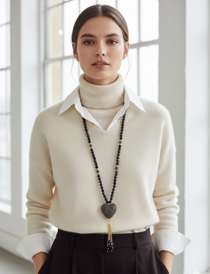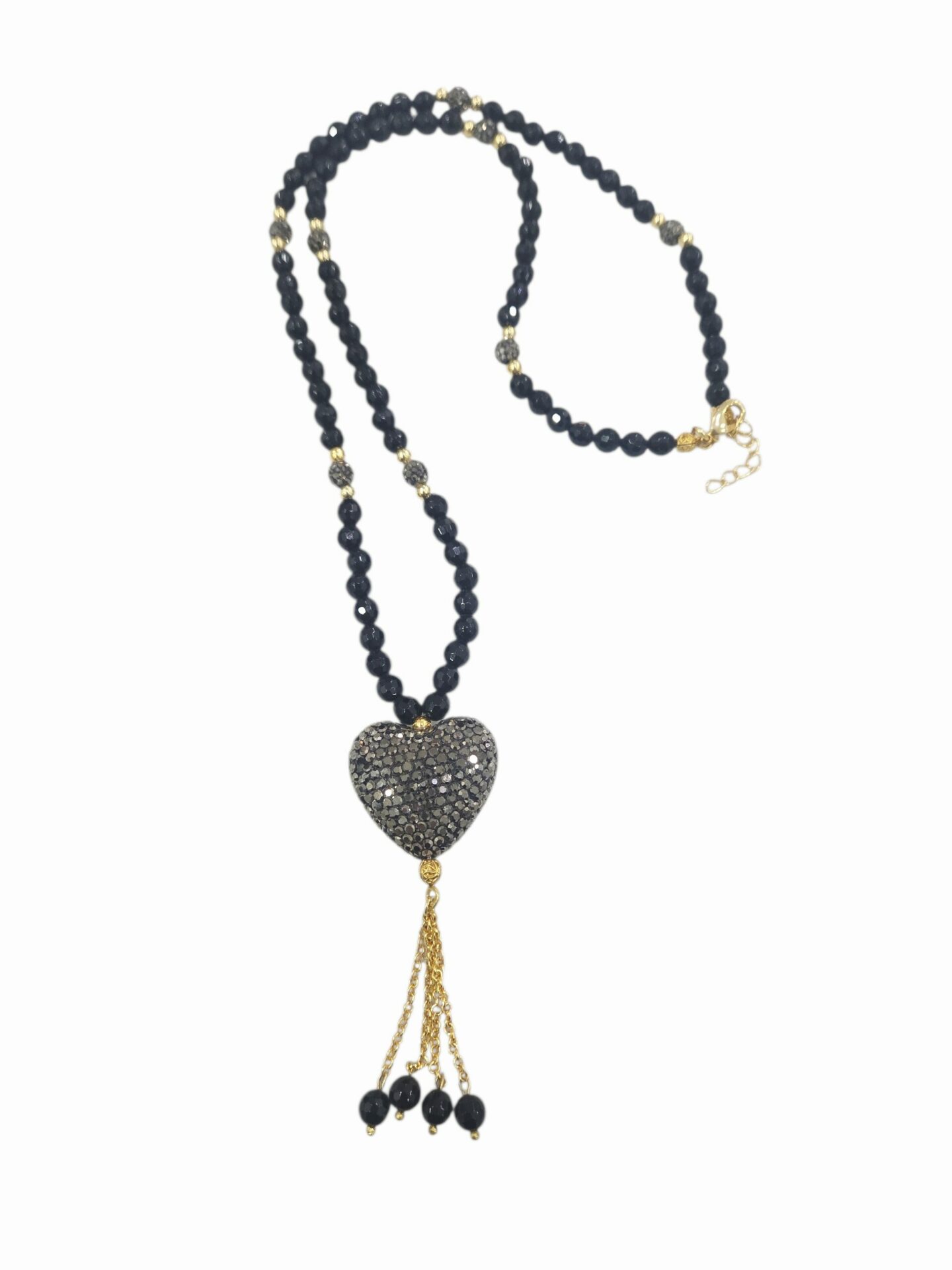 La nostra collana lunga regolabile è una celebrazione della bellezza naturale e dell’artigianato raffinato. Realizzata con cura, combina l’onice profondo e le scintillanti sfere in marcassite ed ematite, creando un gioco di contrasti che cattura lo sguardo. Il ciondolo a forma di cuore, anch’esso adornato con marcassite e onice, aggiunge un tocco romantico e sofisticato. Con una lunghezza di 65 cm, la collana è perfetta per essere indossata da sola o abbinata ad altri gioielli, mentre il ciondolo di 8 cm offre un accento distintivo. Ideale per chi ama la versatilità, questo accessorio si adatta facilmente a diversi stili e occasioni, dal casual chic all’eleganza serale. Indossa questa collana e lasciati avvolgere dal suo fascino senza tempo.