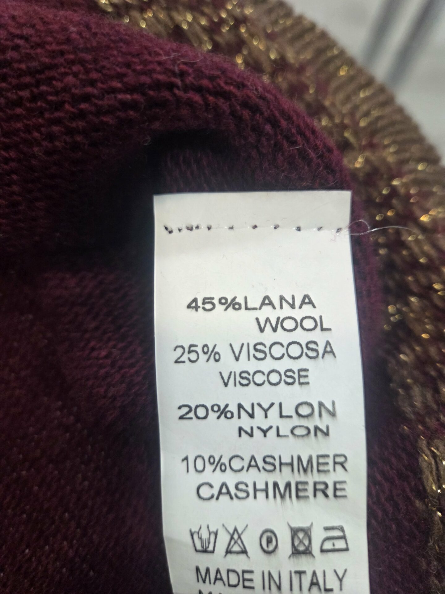 Il nostro maglione girocollo caldo bordeaux รจ il perfetto mix di stile e comfort. Realizzato con un filato lurex scintillante, questo maglione non solo aggiunge un tocco di eleganza al tuo guardaroba, ma offre anche il massimo del comfort grazie alla sua composizione in lana cashmere e viscosa. Prodotto in Italia, รจ sinonimo di qualitร e artigianalitร . La sua taglia unica lo rende adatto a diverse silhouette, garantendo una vestibilitร comoda e avvolgente. Ideale per affrontare le fredde giornate invernali con stile, si adatta facilmente a diversi look, sia casual che eleganti. Non lasciarti sfuggire l’opportunitร di aggiungere questo pezzo versatile e chic alla tua collezione.