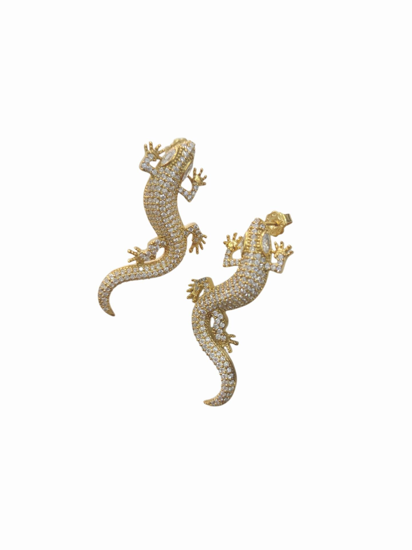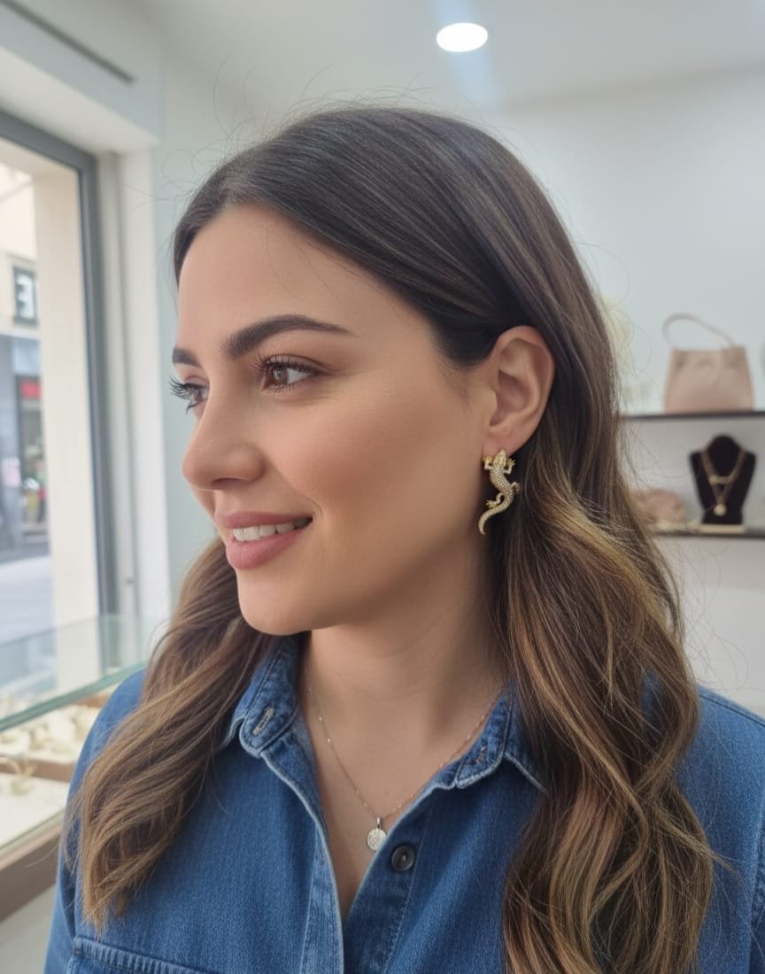 Gli orecchini a lobo Gechi sono l’accessorio perfetto per chi desidera un tocco di classe e brillantezza. Realizzati con zirconi finemente incastonati su una base in ottone dorato, questi orecchini di 4 cm di lunghezza e 3.8 grammi di peso combinano eleganza e leggerezza. I zirconi catturano la luce con un bagliore che valorizza qualsiasi look, dal casual al formale. La robusta struttura in ottone dorato assicura durata e stile, mentre il design sofisticato e discreto li rende ideali per ogni occasione, dal lavoro alle serate speciali. Indossa questi orecchini per esprimere il tuo stile unico e aggiungere un tocco di lusso al tuo outfit quotidiano.