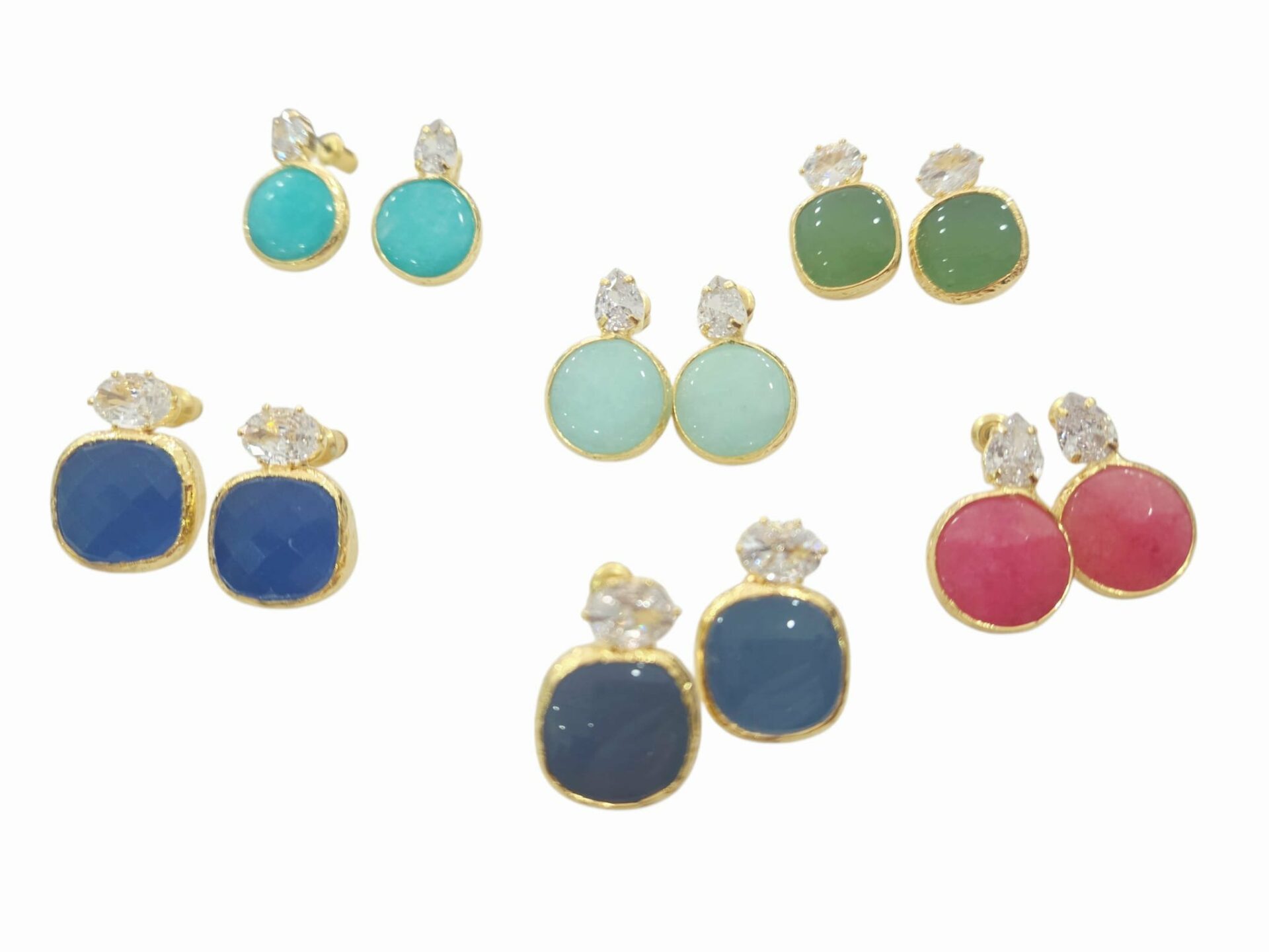 Gli orecchini lobo su base in ottone sono un must-have per chi ama gioielli raffinati e originali. Caratterizzati da un design sofisticato, presentano zirconi a goccia che catturano la luce con grazia, accompagnati da agate tonde che aggiungono un tocco di colore. La combinazione include anche zirconi rettangolari e occhio di gatto quadrato, creando un gioco di geometrie perfetto. Disponibili in una gamma di colori che spaziano dal rosa e turchese al celeste pastello, per le forme tonde, e verde, azzurro, rosa e polvere per quelle quadrate, questi orecchini pesano solo 3.7 grammi e misurano 2 cm di lunghezza. Ideali per arricchire il tuo look quotidiano o per dare un tocco di eleganza alle occasioni speciali, questi orecchini sono un accessorio versatile che non passa inosservato. Esalta il tuo stile con un dettaglio che parla di te.