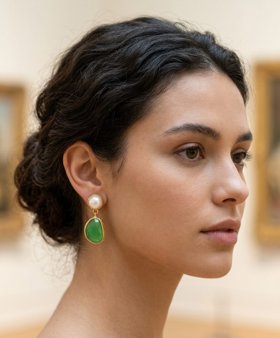 Scopri l’eleganza senza tempo degli orecchini in ottone con occhio di gatto verde e perle di fiume. Questi orecchini a lobo, dal design raffinato e leggero con un peso di soli 3,9 grammi, offrono un comfort eccezionale per l’uso quotidiano o per occasioni speciali. La lunghezza di 2,5 cm li rende perfetti per aggiungere un tocco di classe senza risultare eccessivi. L’occhio di gatto verde, noto per il suo fascino misterioso, è sapientemente abbinato alle perle di fiume, creando un contrasto affascinante che cattura lo sguardo. Il sistema di chiusura con ago e farfalla assicura una tenuta sicura e confortevole. Ideali per chi desidera un accessorio unico che combina bellezza e artigianalità, questi orecchini sono il regalo perfetto per te stessa o per una persona speciale.